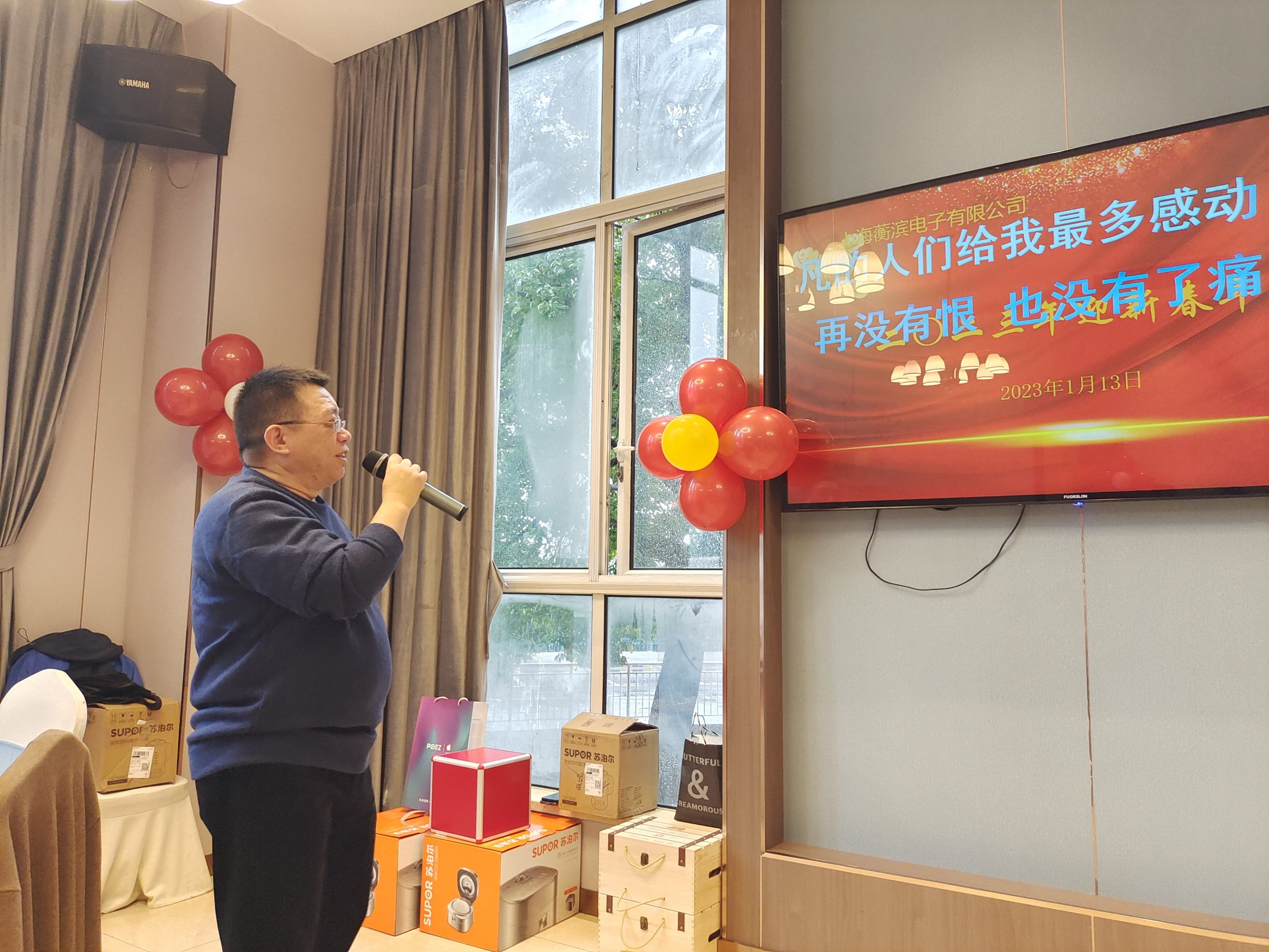 隨著主持人的熱情開場(chǎng),年會(huì)正式拉開帷幕~在熱烈的掌聲中,上海蘅濱總經(jīng)理黃海濱先生與副總經(jīng)理劉戟先生上臺(tái)致辭,首先向各位表達(dá)了衷心的感謝。兩位領(lǐng)導(dǎo)以深情而激昂的話語(yǔ),回顧了往昔的并肩作戰(zhàn),展望了未來的輝煌篇章,讓大家對(duì)新的一年充滿斗志與憧憬。?